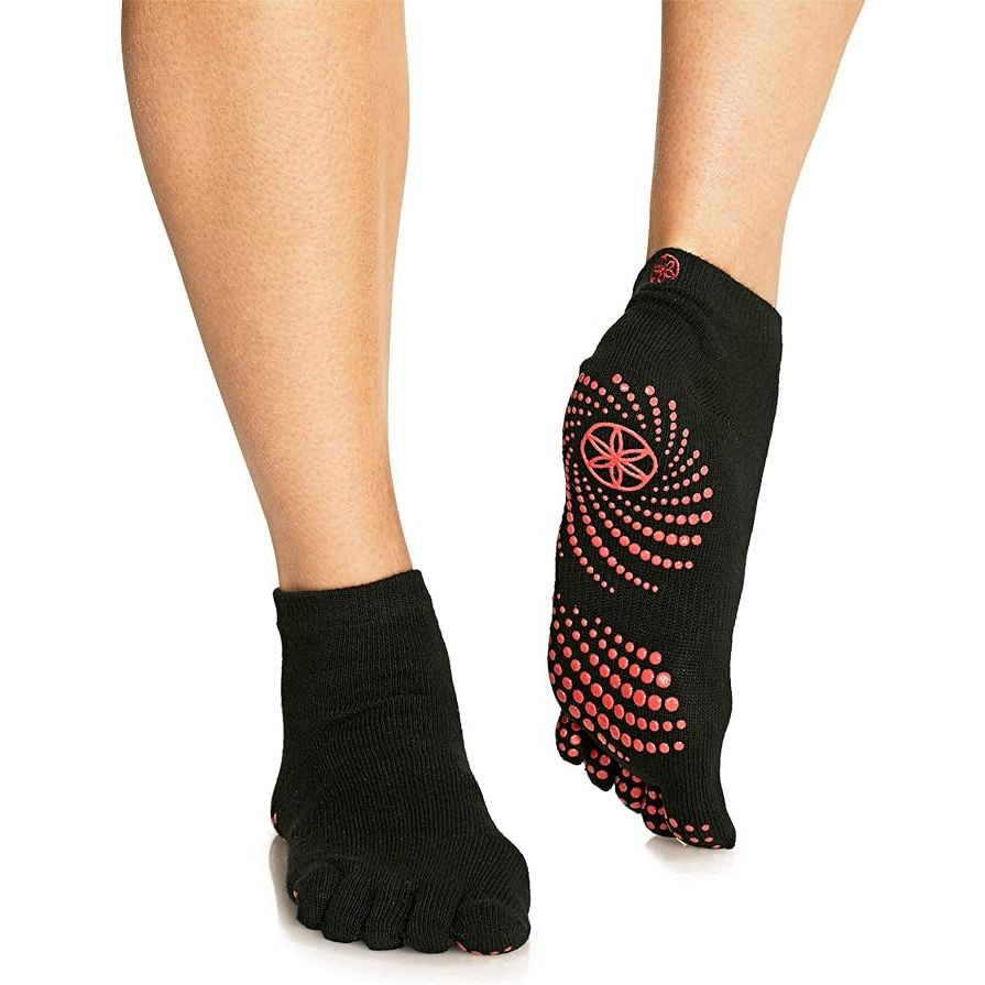Gaiam Grippy Yoga Socks are designed to provide traction and stability during yoga, barre, Pilates, dance, and ballet practice. These socks feature a non-slip sticky grip on the soles, allowing for enhanced balance and control during movements and poses. The full toe design offers added protection and comfort while still allowing for a natural and barefoot-like experience.