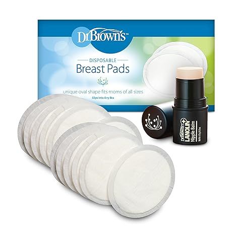 Dr. Brown's Lanolin + Nipple Balm paired with Disposable One-Use Absorbent Breast Pads is a must-have solution for breastfeeding mothers looking for comfort and ease. The lanolin nipple balm, known for its moisturizing properties, soothes and protects sore nipples, ensuring a gentle experience for both mom and baby. Easily absorbed and providing instant relief, this balm helps maintain nipple health and suppleness.