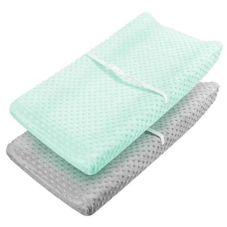 Babebay Changing Pad Cover - Ultra Soft Minky Dots Plush Changing Table Covers Comfortable Breathable Changing Table Sheets Wipeable Changing Pad Covers Suit for Baby Boy and Baby Girl Lt Green & Gray