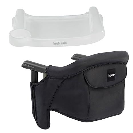 Inglesina - Fast Table Chair with Fast Tray: Hook On Portable High Chair for Babies and Toddlers, Damage Free Travel Booster Seat for Restaurant Use - Includes Snap On Tray, Black