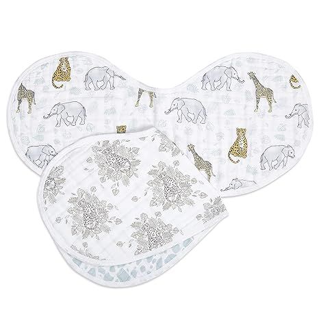 aden + anais 100% Cotton Muslin Burpy Bib – Multi-Use, Absorbent 4-Layer Burp Cloth and Full-Coverage Snap-Closure Baby Bib in One, Lap-Shoulder Drool Cloth, 22.5” X 11”, 2-Pack, Jungle