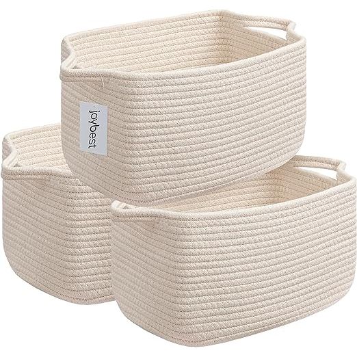 Small Cube Storage Baskets for Shelves, Cotton Woven Basket Bins for Toys Organizing, Rope Baskets for Gifts Empty with Handles for Nursery Organizer Towels Swaddle Blankets Baby Clothes Diaper Candy