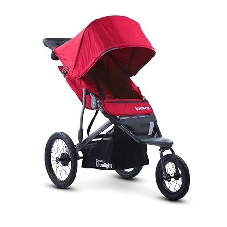 Joovy Zoom360 Ultralight Jogging Stroller Featuring High Child Seat, Shock-Absorbing Suspension, Extra-Large Air-Filled Tires, Parent Organizer, Air Pump, and Easy One-Hand Fold (Red)