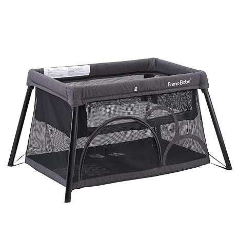 Pamo Babe Travel Crib, Portable Crib for Baby Lightweight Baby Travel Playpen, Foldable Travel Playard with Comfortable Mattress for Babies (Grey)