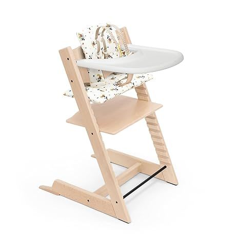 Tripp Trapp High Chair and Cushion with Stokke Tray - Natural with Mickey Celebration - Adjustable, Convertible, All-in-One High Chair for Babies & Toddlers