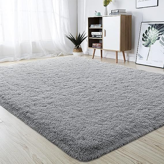 junovo Ultra Soft Area Rugs 4x5.3 Feet Fluffy Carpets for Bedroom Kids Girls Boys Baby Living Room Shaggy Floor Nursery Rug Home Decor Mats, Grey