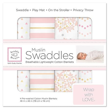 SwaddleDesigns Cotton Muslin Swaddle Blankets, Set of 4, Receiving Blankets for Baby Boys & Girls, Best Shower Gift, 46x46 inches, Heavenly Floral