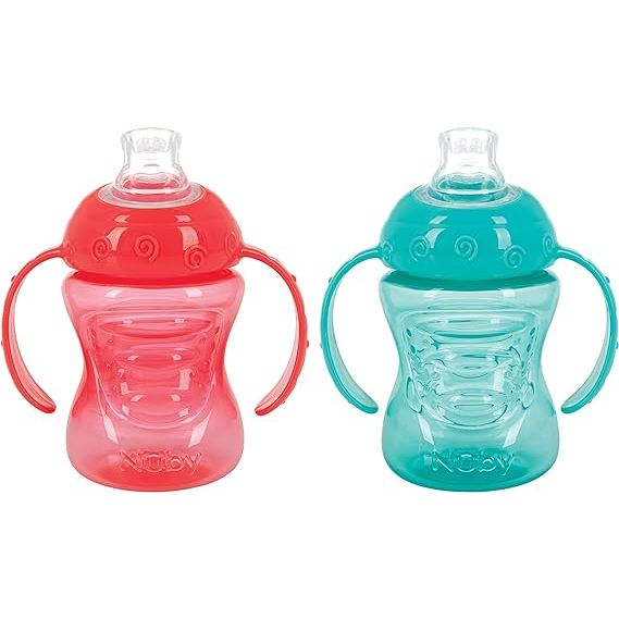 Nuby Two-Handle No-Spill Super Spout Grip N' Sip Cups, 8 Ounce (2 Count, Multi), are a popular choice for parents looking for spill-proof and easy-to-use drinking cups for their little ones. These cups are designed to transition babies from bottle feeding to drinking from a regular cup.