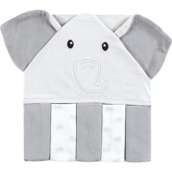 Hudson Baby Unisex Baby Hooded Towel and Five Washcloths, Gray Elephant, One Size