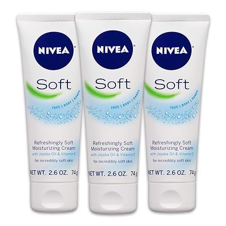 NIVEA Soft is a renowned moisturizing cream that offers a multitude of benefits for your skin. This versatile product is available in various forms such as a Refreshingly Soft moisturizing cream, body cream, face cream, and hand cream. Packaged in a convenient 3 pack of 2.6 oz tubes, it is an ideal choice for those seeking a portable and long-lasting moisturizer.