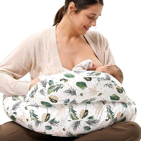 Momcozy Original Nursing Pillow for Breastfeeding, Plus Size Breastfeeding Pillows for More Support, with Adjustable Waist Strap and Removable Cotton Cover, Spring Leaves