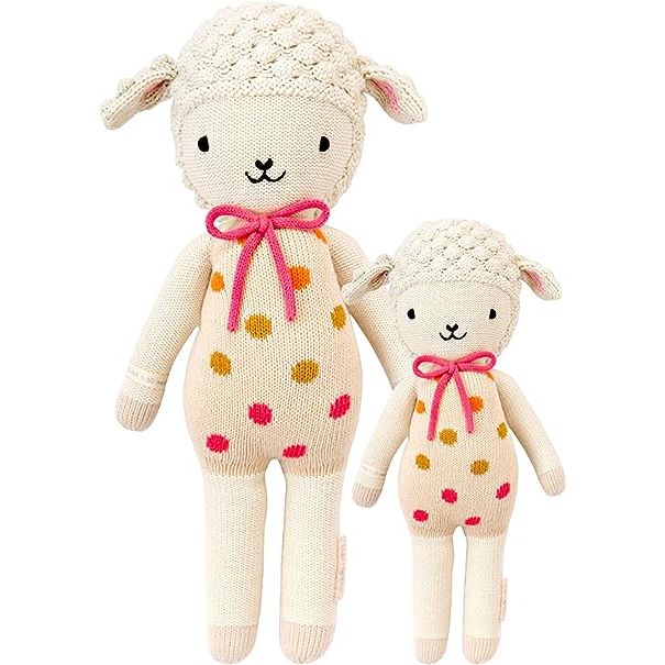 Join the award-winning cuddle+kind family and experience a doll that has been recognized as the Best Toy for seven years in a row. Perfect for baby announcements, baby showers, nursery decor, and even holiday and birthday gifts, these hand-knit stuffed animals come with a Happiness Guarantee. If you are unsatisfied with your doll for any reason, you can easily replace or return it, no strings attached. Choose Lucy the Lamb and bring joy, love, and meals to children in need. Description by ChatGPT.
