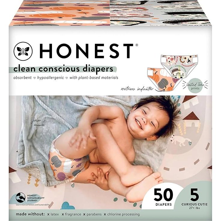 The Honest Company Clean Conscious Diapers | Plant-Based, Sustainable | Fall '23 Limited Edition Prints | Club Box, Size 5 (27+ lbs), 50 Count