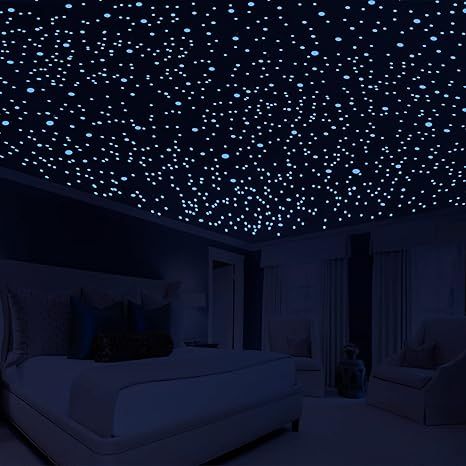 Not only do these glow in the dark galaxy set add the look of a real night sky, but they are also incredibly easy to use and remove. Simply clean the wall before sticking the stars and dots, and secure them in place with the included adhesive putty. To activate the glow effect, expose the stickers to light for 5 minutes and then turn off the lights. When you want to take them down, just twist them gently off and you'll find a clean, residue-free surface underneath. Plus, our product comes with a 100% refund or resend guarantee. If you are not completely satisfied, we will happily issue a refund or send a new package - no questions asked. Experience the magic of a starry shiny bedroom with the 3D Starry Sky Adhesive Dots! Description by ChatGPT.