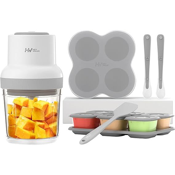 The HEYVALUE Baby Gift Set is a must-have for all new parents. This set comes with everything you need to make homemade baby food, including six baby food containers, a freezer tray, two silicone spoons, one silicone spatula, and baby food recipes. No need to buy these items separately, saving you time and money. Made from high borosilicate glass and stainless steel, this baby food maker ensures perfect portions and freezer-friendly storage. All components are BPA-free for your baby's safety. With its six sharp stainless steel blades and powerful motor, you can create complementary foods of different consistencies with just one button press. Cleaning is a breeze with the dishwasher-safe design. Customize your baby's meals to introduce them to your family's favorite flavors. Say goodbye to store-bought baby food and hello to healthy, homemade meals with the HEYVALUE Baby Gift Set. Description by ChatGPT.