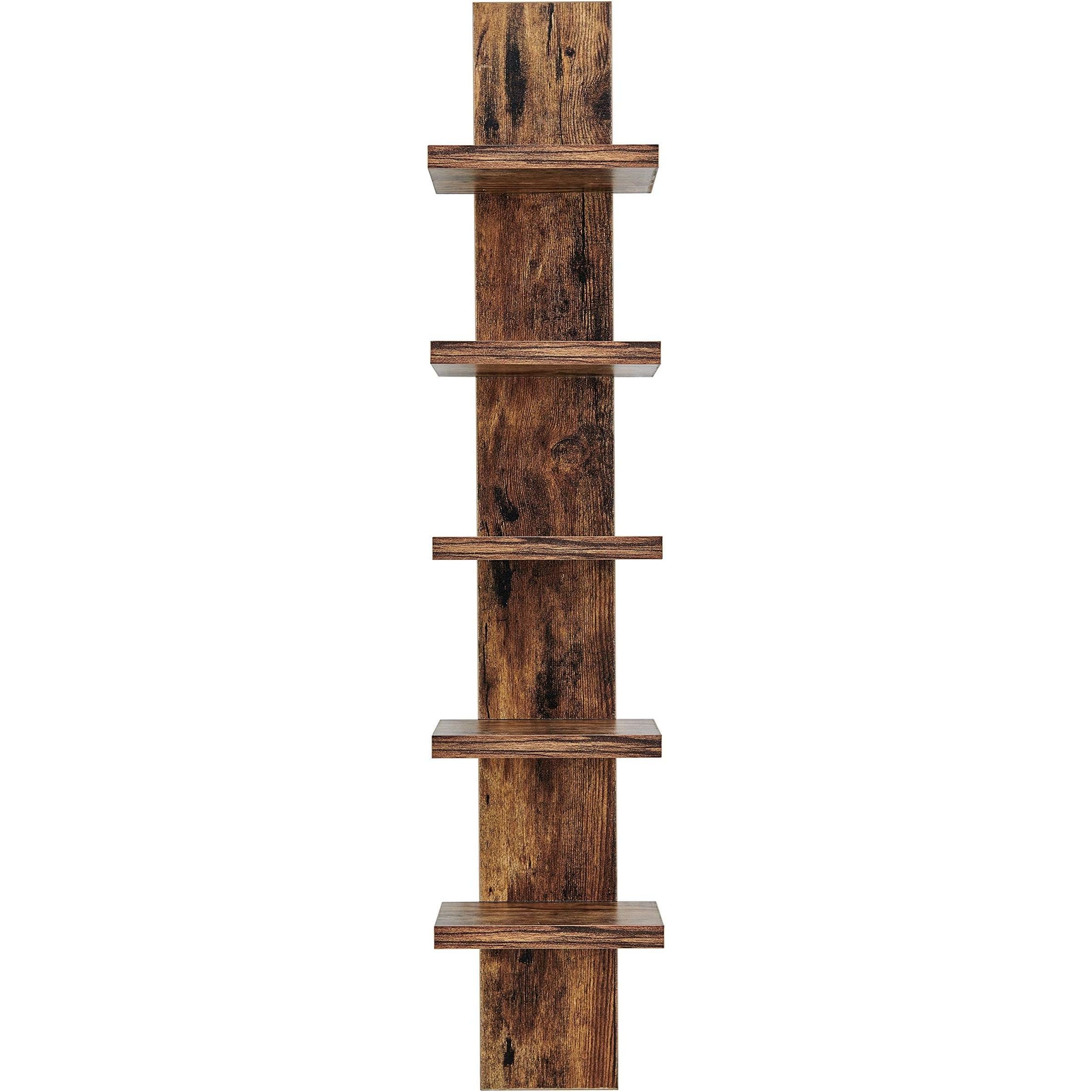 Danya B 5 Tier Wall Shelf Unit Narrow Smooth Laminate Finish - Vertical Column Shelf Floating Storage Home Decor Organizer Tall Tower Design Utility Shelf Bedroom Living Room 5.1" x 6" x 30" (Pine)