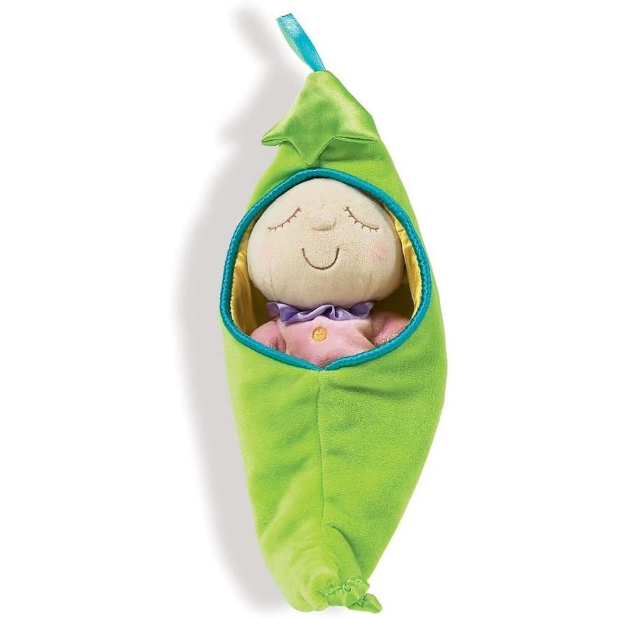 questions and to ensure quality and safety standards are met. When it comes to choosing a baby doll, the Snuggle Pods Sweet Pea is a top choice. This adorable baby doll is designed for babies 6 months and up, making it the perfect first toy for your little one. With its soft plush fabric, embroidered facial features, and ribbon hair, Sweet Pea is both soft and snuggly, providing comfort and companionship to your child. The 12" removable sleeping pod adds an extra level of play and imagination for your child, making bedtime even more special. This baby doll is not only cute but also nurturing, encouraging your child to cuddle, snuggle, and nurture their new friend. With its outstanding design, quality, and safety standards, the Snuggle Pods Sweet Pea is an excellent choice for a baby shower gift or a new addition to your child's toy collection. Choose a reliable and trusted brand like Manhattan Toy for your child's playtime needs, knowing that safety and quality are their highest priorities. Description by ChatGPT.
