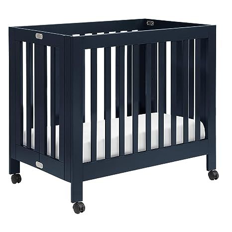 Babyletto Origami Mini Portable Folding Crib with Wheels in Navy, 2 Adjustable Mattress Positions, Greenguard Gold Certified