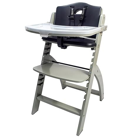 Abiie Beyond Junior Convertible Wooden High Chairs for Babies & Toddlers. 3-in-1 Adjustable High Chair with Removable Tray, Easy to Clean, Portable. 6 Mos.-250 Lb. Misty Grey Wood/Black Pearl Cushion