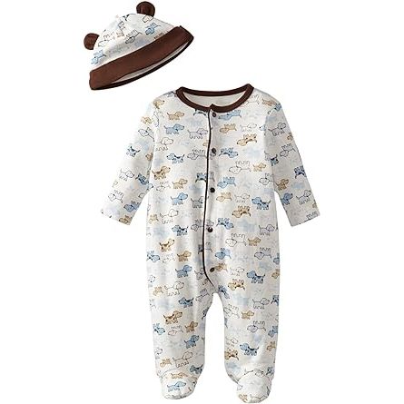In addition to their cute appearance, the footie and hat set is also practical. They are machine washable, making it easy to keep them clean and fresh for your baby's next wear. The durable construction ensures that they can withstand frequent washing without losing their shape or quality.