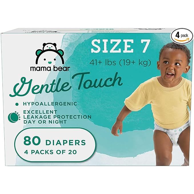 Amazon Brand - Mama Bear Gentle Touch Diapers, Hypoallergenic, Size 7, 80 Count (4 packs of 20), White
