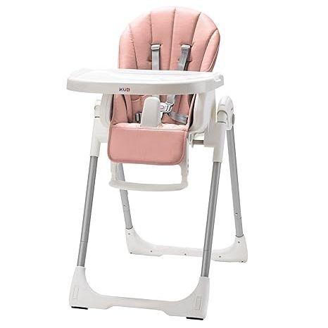 KÜB 3-in-1 Foldable Baby High Chair (Pink) | Multifunctional Infant HighChair for Babies & Toddlers | Removable Seat & Tray for Easy Clean | 7 Height & 4 Recline Adjustable | 2 Locking Wheels | Safe