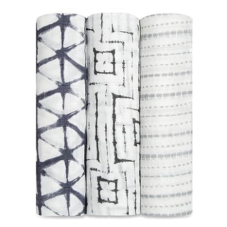 aden + anais Silky Soft Swaddle Blanket,100% Bamboo Viscose Muslin Blankets for Girls & Boys, Baby Receiving Swaddles, Ideal Newborn & Infant Swaddling Set, 3 Pack, Pebble Shibori