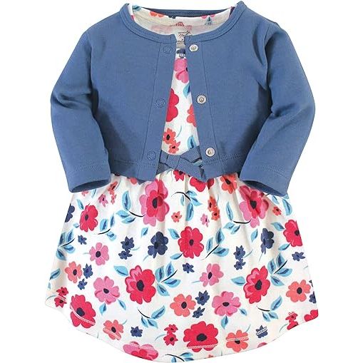 Touched by Nature's Baby Girl Organic Cotton Dress and Cardigan set combines style, comfort, and sustainability in one delightful package. By choosing organic and chemical-free clothing, you can provide the best for your baby while also contributing to a greener and safer environment. Description by ChatGPT.