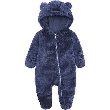 TAOHONG Newborn Baby Jumpsuit Hooded Fleece Rompers Infant Bear Ear Snowsuit Warm Outwear Outfits
