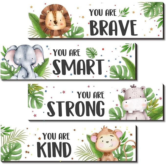 Unleash your child's potential and create a positive and empowering environment with our Wooden Jungle Animals Signs with Inspirational Quotes. Order now and watch your child's confidence soar! Description by ChatGPT.