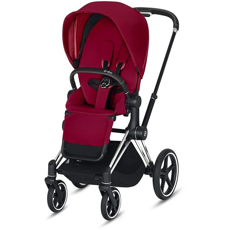 Cybex Priam 3 Complete Stroller, One-Hand Compact Fold, Lightweight, Reversible Seat, Smooth Ride All-Wheel Suspension, Extra Storage, Adjustable Leg Rest, True Red with Chrome/Black Frame