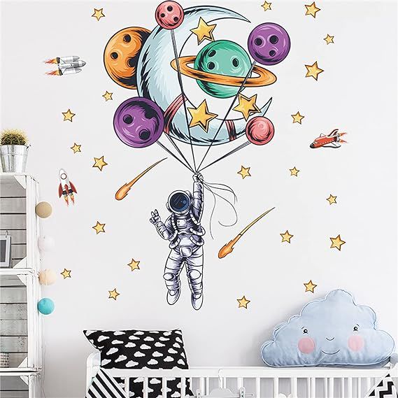 ROFARSO Astronaut Wall Stickers Planet Space Star DIY Vinyl Removable Large Wall Decals Art Decorations Decor for Kids Boys Bedroom Living Room Playing Room Murals