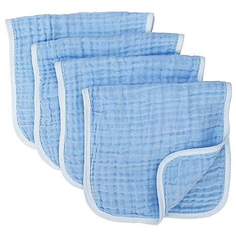 Synrroe Muslin Burp Cloths Large 20 by 10 Inches 100% Cotton 6 Layers Extra Absorbent and Soft 4 Pack Blue