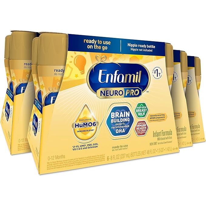 Introducing Enfamil NeuroPro, the expert-recommended infant formula that provides essential DHA for brain-building nutrition. Our formula is designed to support your baby's development from birth through 12 months. Enfamil NeuroPro comes in convenient and ready-to-use bottles, making it perfect for late-night feedings or on-the-go moms. Crafted with non-GMO ingredients, our formula offers complete nutrition to support your little one's growth and immune health. Trusted by pediatricians, Enfamil is the #1 infant formula recommended. It's also SNAP eligible, so you can purchase it with Supplemental Nutrition Assistance Program benefits. Choose Subscribe and Save for additional savings and convenience. Give your baby the best start with Enfamil NeuroPro. Description by ChatGPT.