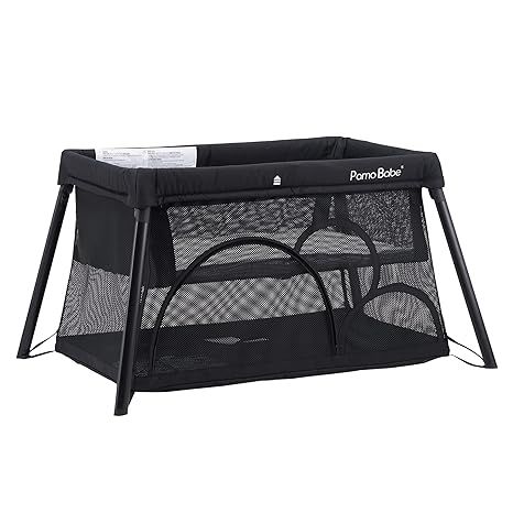 Pamo Babe Travel Crib, Portable Crib for Baby Lightweight Baby Travel Playpen, Foldable Travel Playard with Comfortable Mattress for Babies (Black)