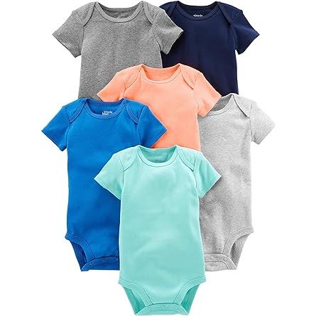 In summary, Simple Joys by Carter’s Baby Boys' Short-Sleeve Bodysuit, Pack of 6, is a versatile and durable clothing choice for baby boys. The pack includes six different colors or patterns, allowing parents to dress their little one in style. With their comfortable fit, easy snap closure, and soft fabric, these bodysuits are a practical and fashionable choice for any baby boy's wardrobe. Description by ChatGPT.