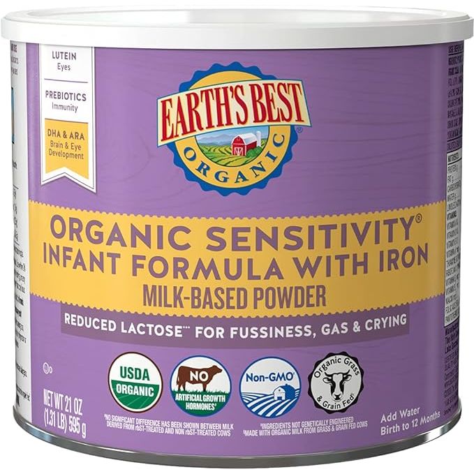 Earth's Best Organic Sensitive Baby Formula is a specially designed powdered infant formula that caters to the needs of babies aged 0 to 12 months. It is formulated to be gentle on sensitive tummies and is suitable for infants with lactose sensitivity.