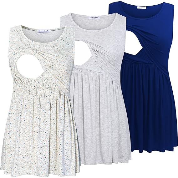 Bearsland Women's Maternity Nursing Tank Tops Sleeveless Scoop Neck Breastfeeding Shirt Pregnancy Clothes