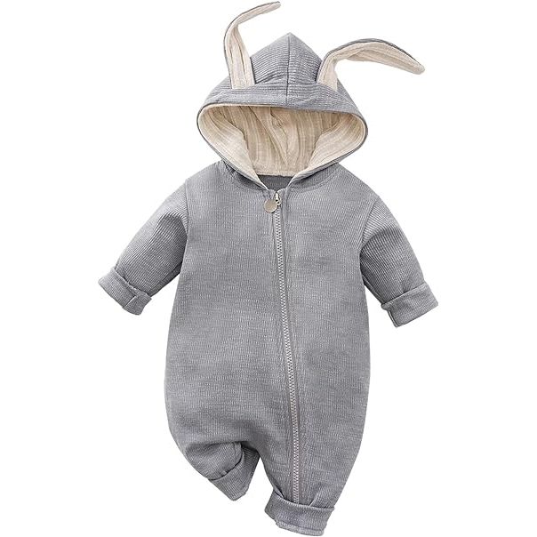 RELABTABY Newborn Baby Boy Girl Romper Cotton Cute Bunny Long Sleeves Zipper Hoodie Infant Bodysuits Jumpsuit Outwear