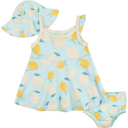 The Gerber baby-girls 3-piece sundress, diaper cover, and hat set are available in a variety of sizes, catering to infants and toddlers. The set comes in an array of delightful colors and patterns, offering options to suit any taste or occasion.