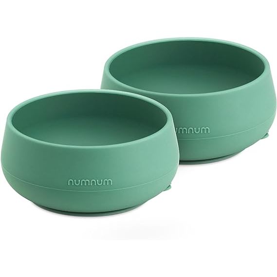 NumNum Suction Bowls | Extra Strong Suction | Non-Slip Design | Durable 100% Food Grade Silicone BPA-Free | for Babies & Toddlers 4 months+, 2 Baby Bowls (Green)